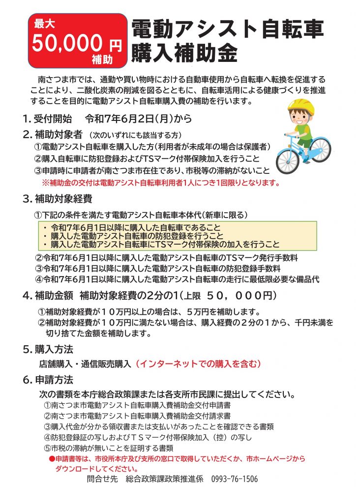 南さつま市の【電動アシスト自転車購入補助~最大5万円】の後期申請がはじまっています。50人分の予算しかないようですので、お早めに!!